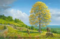 Samweis Gamdschie erhielt von Galadriel zum Abschied eine Nuss des Mallorn als Geschenk und pflanzte diese nach seiner Rückkehr an Stelle des großen Festbaumes in Hobbingen ein. Dies war der einzige Mallorn westlich des Gebirges und östlich des Meeres. Im Gegensatz zu früheren Versuchen westlich des Nebelgebirges gedieh er sehr gut, was wohl an den Düngerkörnern liegt, die Galadriel Sam mitgab und die er mit einpflanzte.