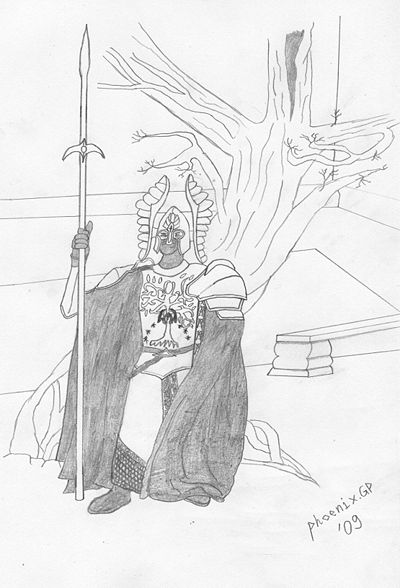 [[ | [[Datei:Turmwache.jpg|thumb|400px|Turmwächter vor dem Weißen Baum (Zeichner: Phoenix.GP(dem Film nachempfunden))]] | ||