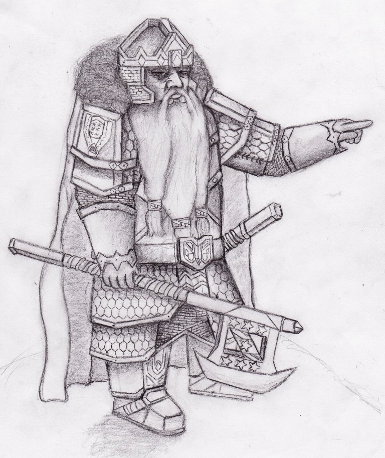 Durin´einer der sieben Zwergenväter. Auf seiner Axt befinden sich die sieben Serne die er im Spiegelsee erblickte! |