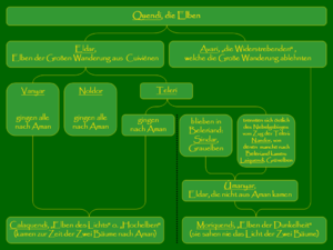Quendi Alle Elben | ┌—”—”—”—”—”—”—”—”—”—”—”—”—”—”â”´—”—”—”—”—”—”—”—”—”—”—”—”—”—”—”—”—”┠│ │ ┌—”—”—”—”—”—”â”´—”—”—”—”—”┬—”—”—”—”—”—”—”—”—”—”—”┠│ │ │ │ │ Vanyar Noldor Teleri Avari Licht- Tief- Das dritte Die Wider- elben elben Elbenvolk strebenden │ ┌—”—”—”—”—”—”—”—”—”—”—”—”—”┬—”—”—”—”—”—”—”—”—”—”—”┼—”—”—”—”—”—”—”—”—”—”—”┠│ │ │ │ Falmari Sindar Nandor Waldelben Teleri Grauelben von Gefolge Andere, die von Beleriand von die Große Aman Lenwe Wanderung │ abbrachen │ Laiquendi Grünelben von Ossirand