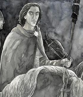 - ↑ Es kann sich eigentlich nur um einen Neffen Gilraens handeln, denn hätte Arathorn II. Geschwister gehabt, wäre Aragorn II. nicht sofort nach dessen Tod zu seinem Nachfolger geworden. Ein weiterer Hinweis wäre der Name Halbarad, dieser legt eher eine Verwandtschaft mit Gilraen nahe, da ihr Großvater Gilbarad hieß, beide Namen beinhalten den zweiten Namensbestandteil -barad. Auch scheint er von seiner Großmutter Ivorwen die Gabe der Voraussicht geerbt zu haben, da er seinen eigenen Tod voraussah.