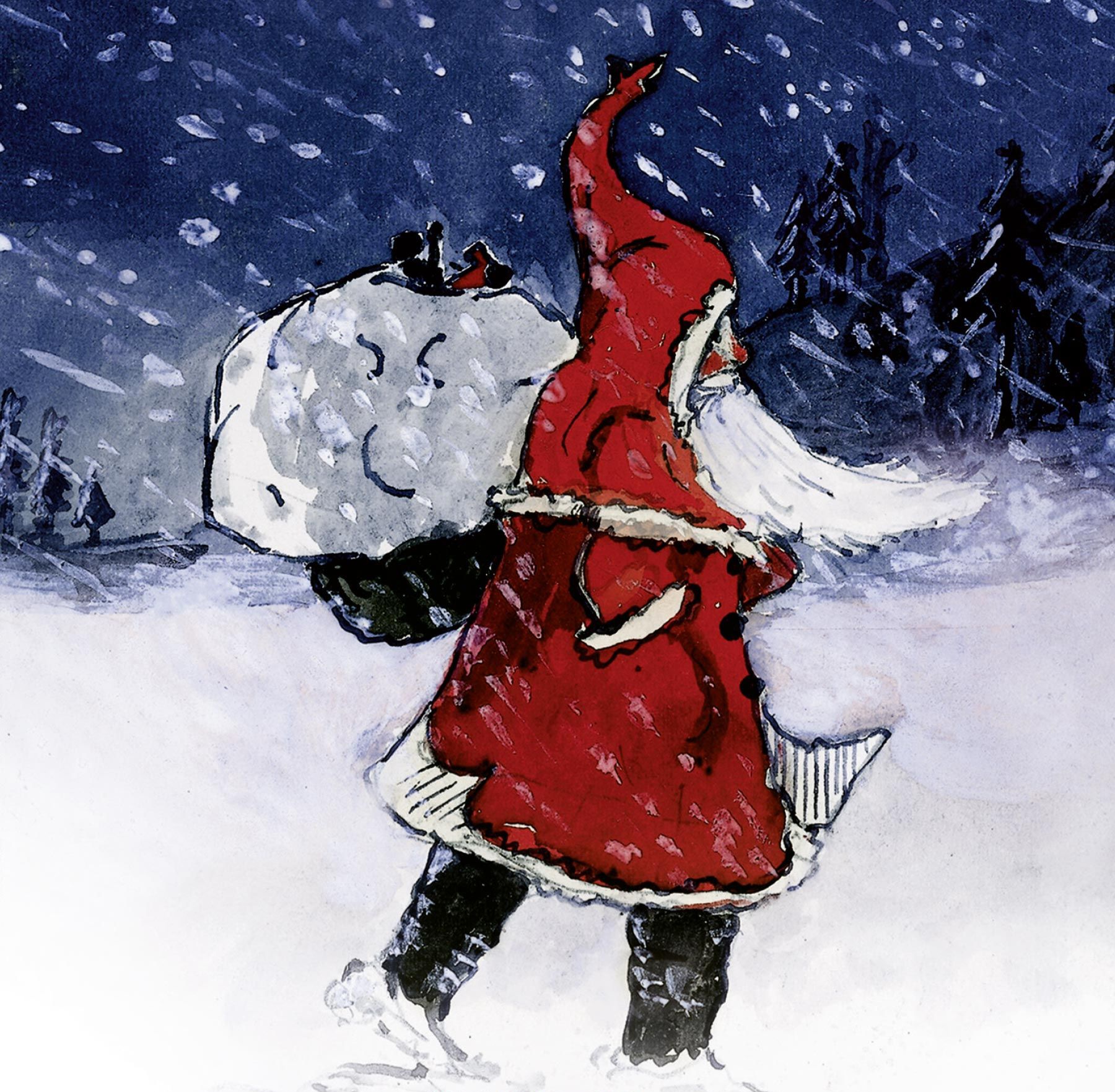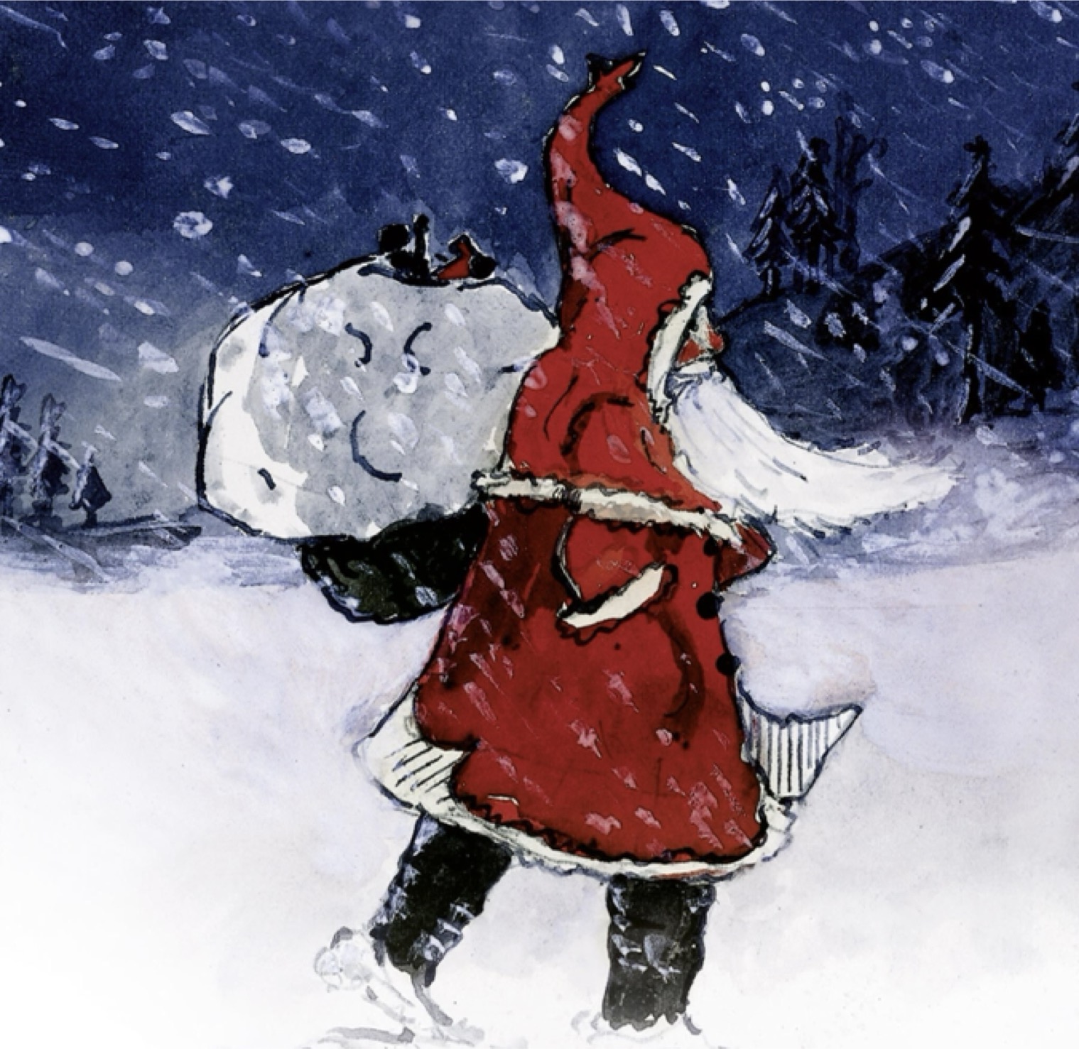 Ausschnitt aus dem Cover von Briefe vom Weihnachtsmann, das den Weihnachtsmann zeigt (Aquarell von J. R. R. Tolkien)