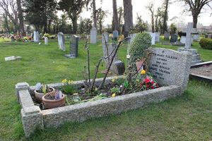 Das Grabmal von J. R. R. Tolkien und seiner Frau befindet sich auf dem katholischen Teil des Wolvercote Cemetery auf dem Jordan Hill in Oxford;[15] auf den Grabsteinen stehen neben ihren Namen auch die Namen Beren und Lúthien – Zeichen für eine den Tod überdauernde Liebe.