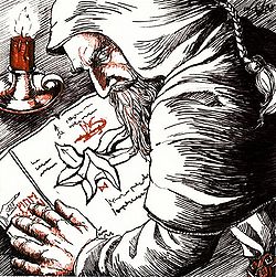 Der Zauberer tat dies bei der Zwergengesellschaft in Bilbo Beutlins Behausung 91 Jahre später. Mit Hilfe der Karte, die Elrond entschlüsselte, fand die Gemeinschaft schließlich die Nebentür zum Erebor, durch die Thrór und Thráin einstmals dem Drachen entkommen waren.
